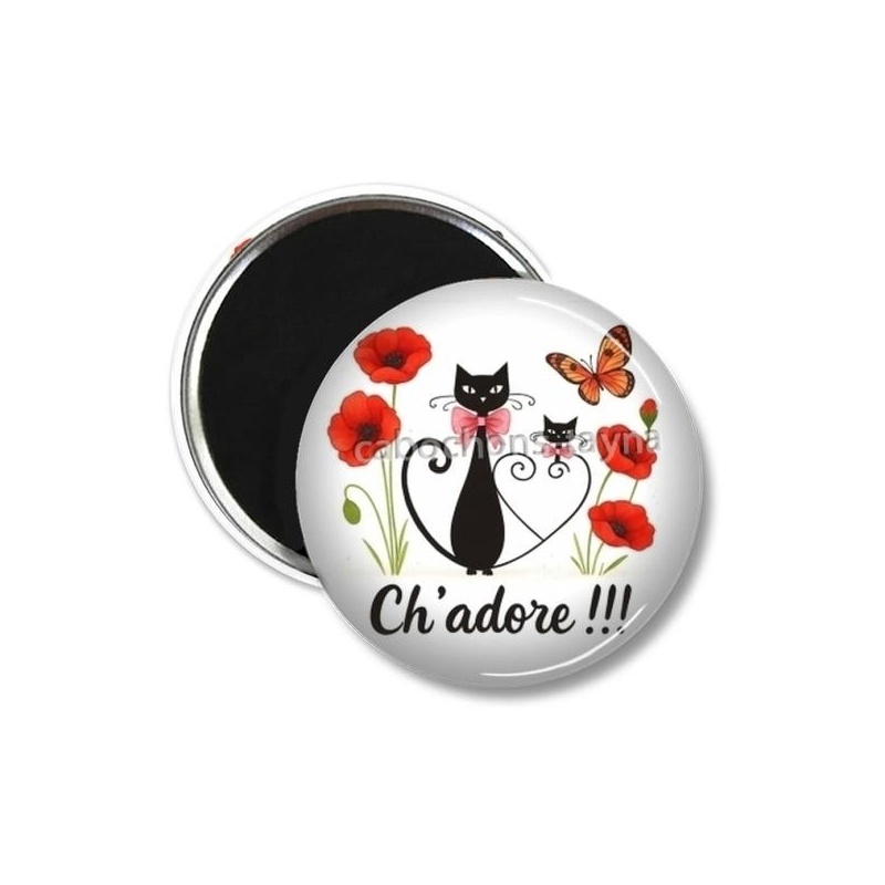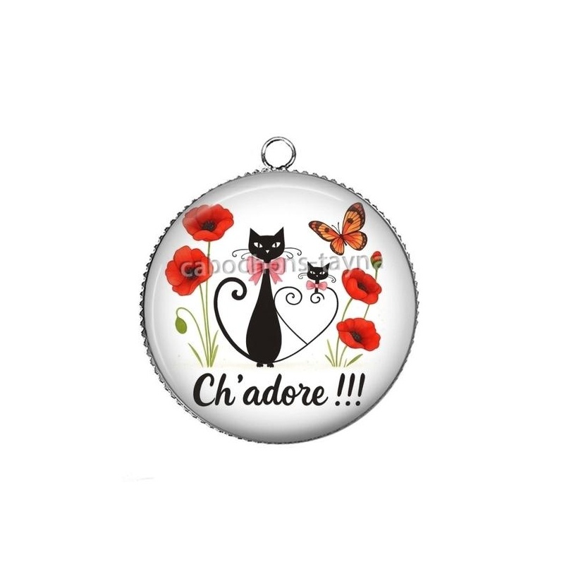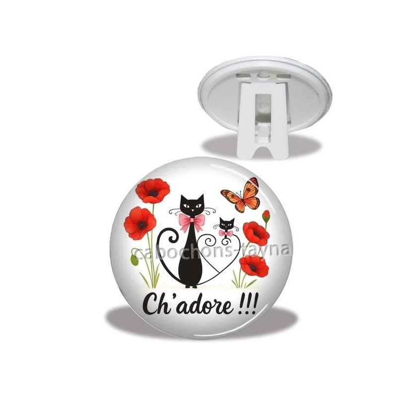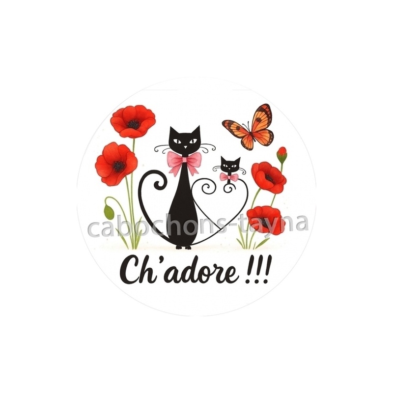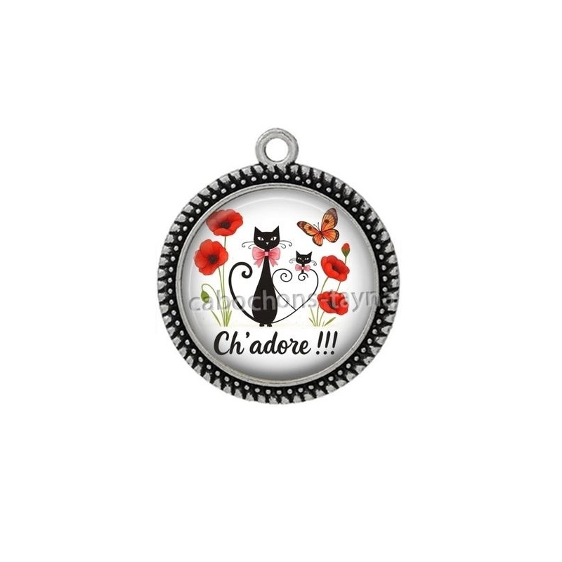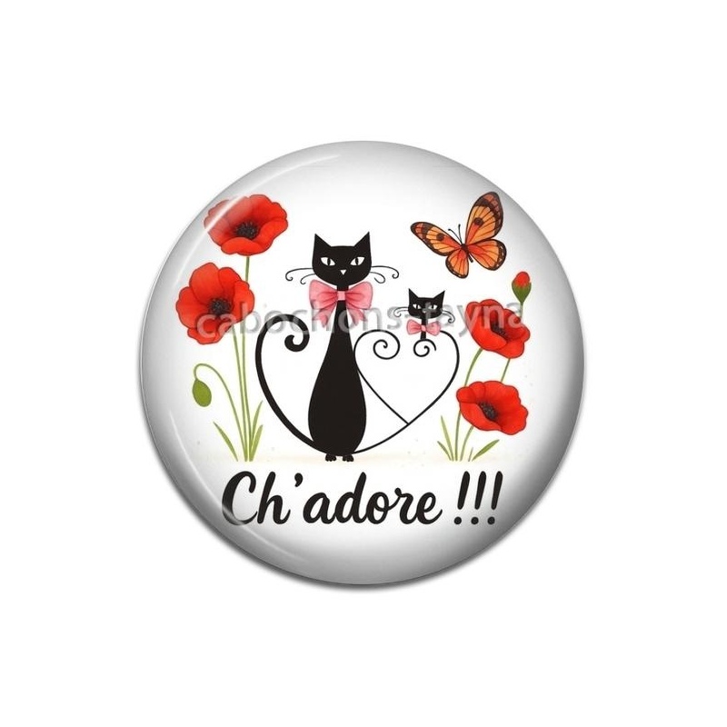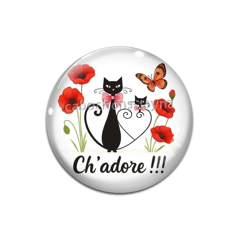 Cabochon Verre - chat ch'adore Agrandir l'image