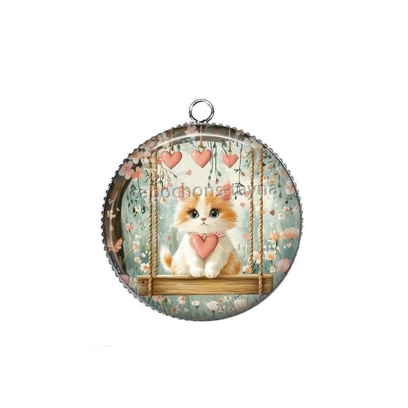 Cabochon Verre - chat balançoire coeur Agrandir l'image