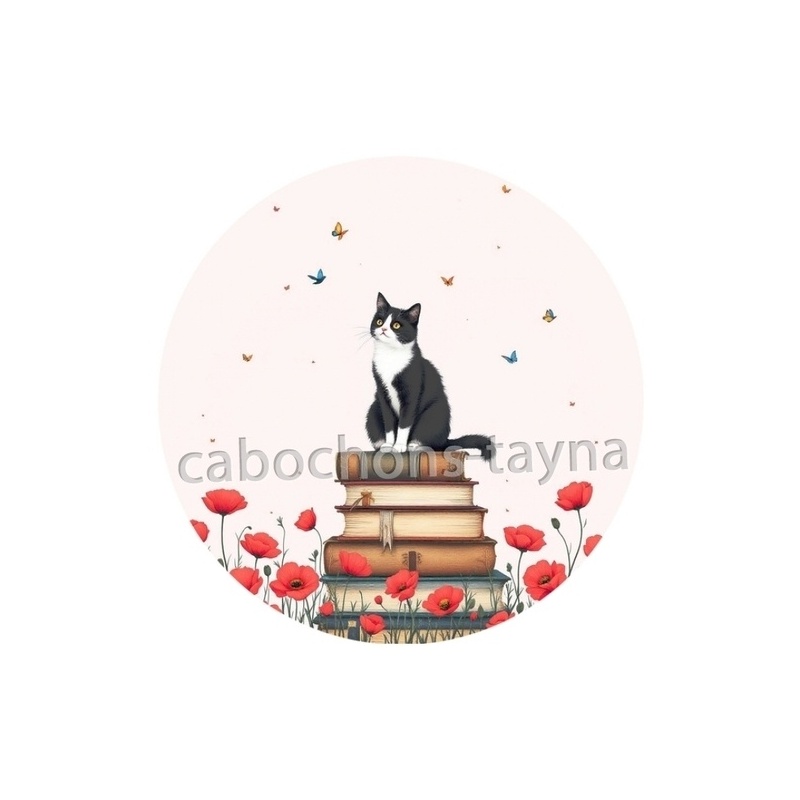 Cabochon Verre - chat coquelicot Agrandir l'image