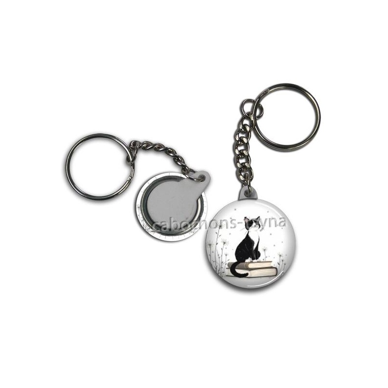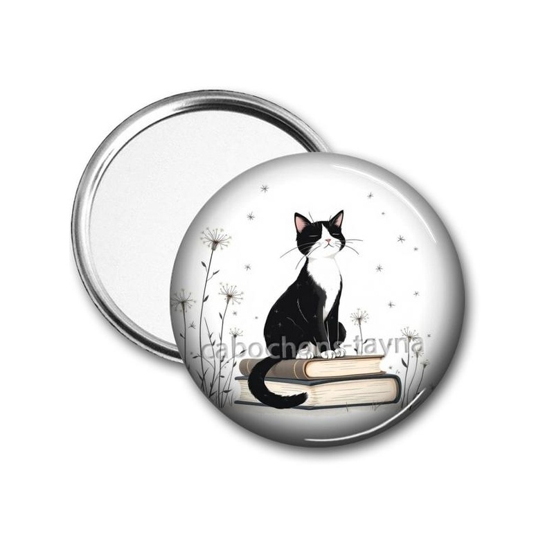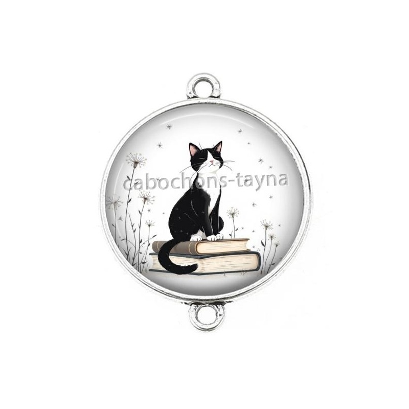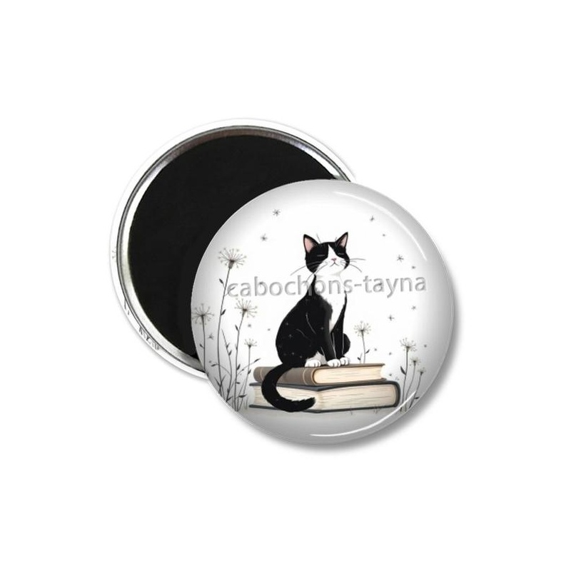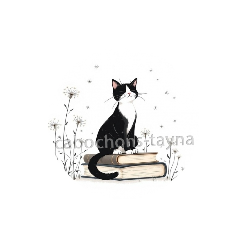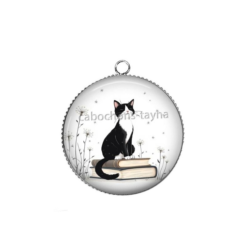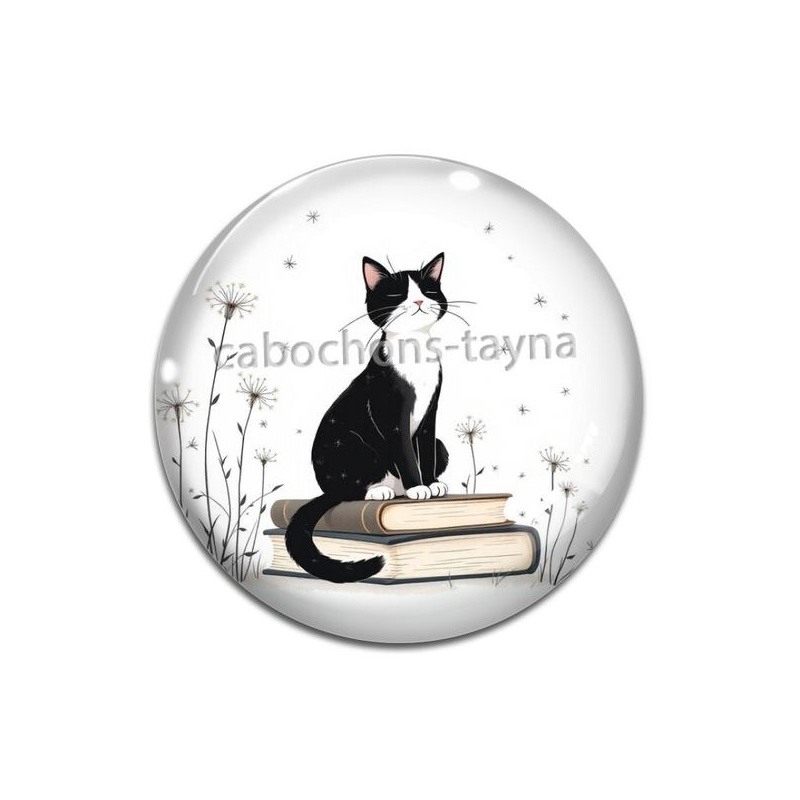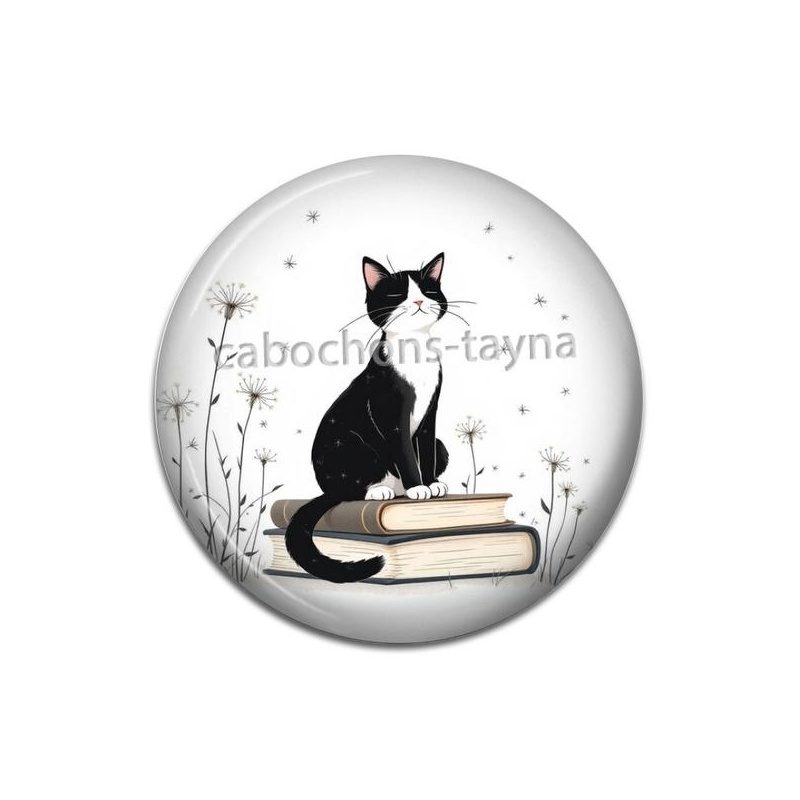Cabochon Verre - chat pissenlit et livre Agrandir l'image