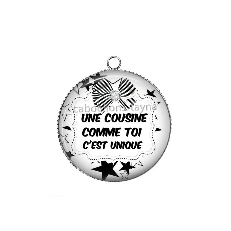 Cabochon Verre - une cousine comme toi c'est unique Agrandir l'image