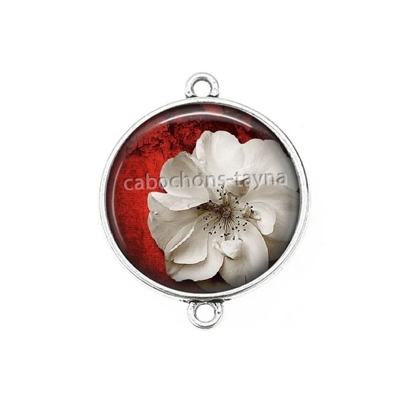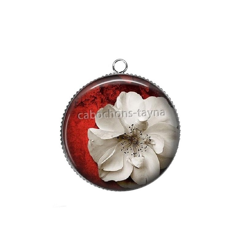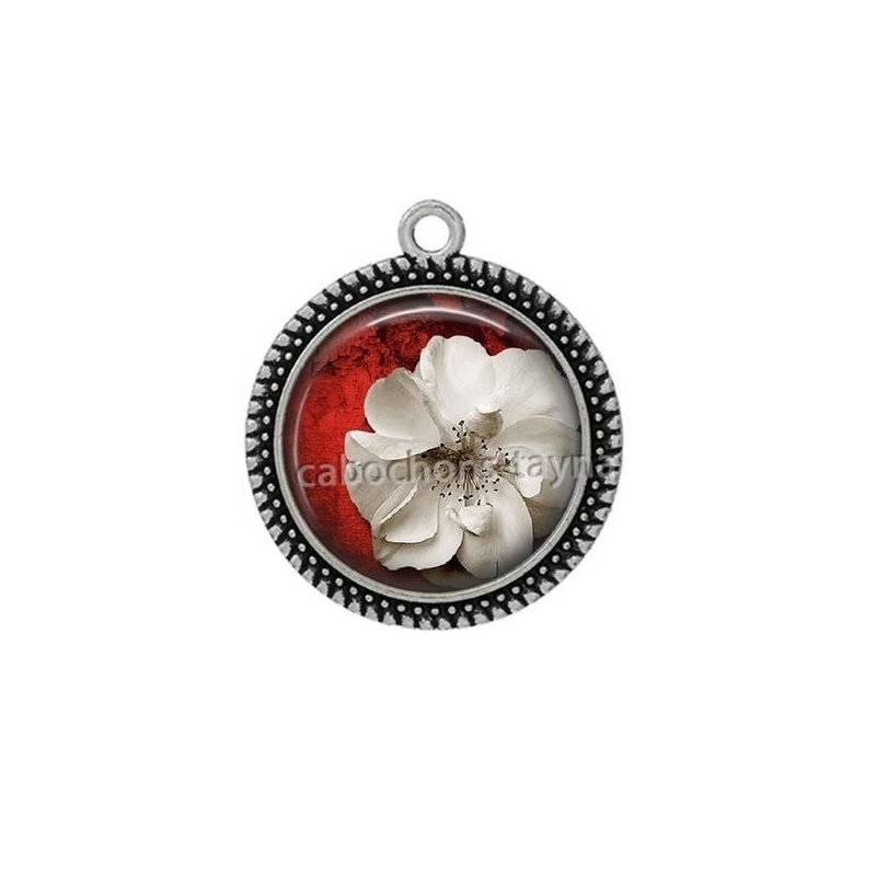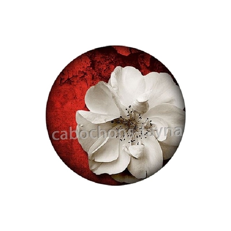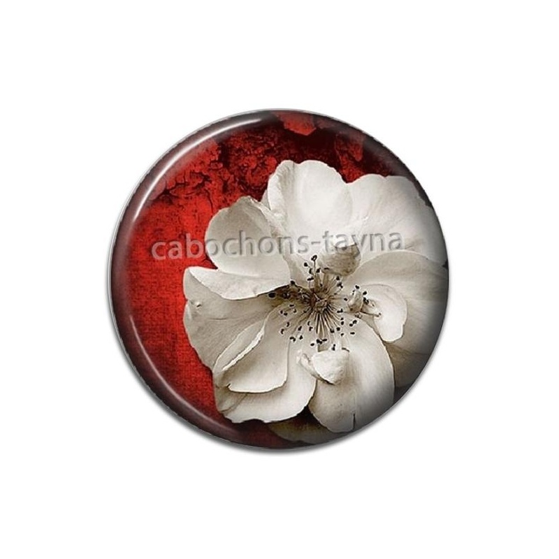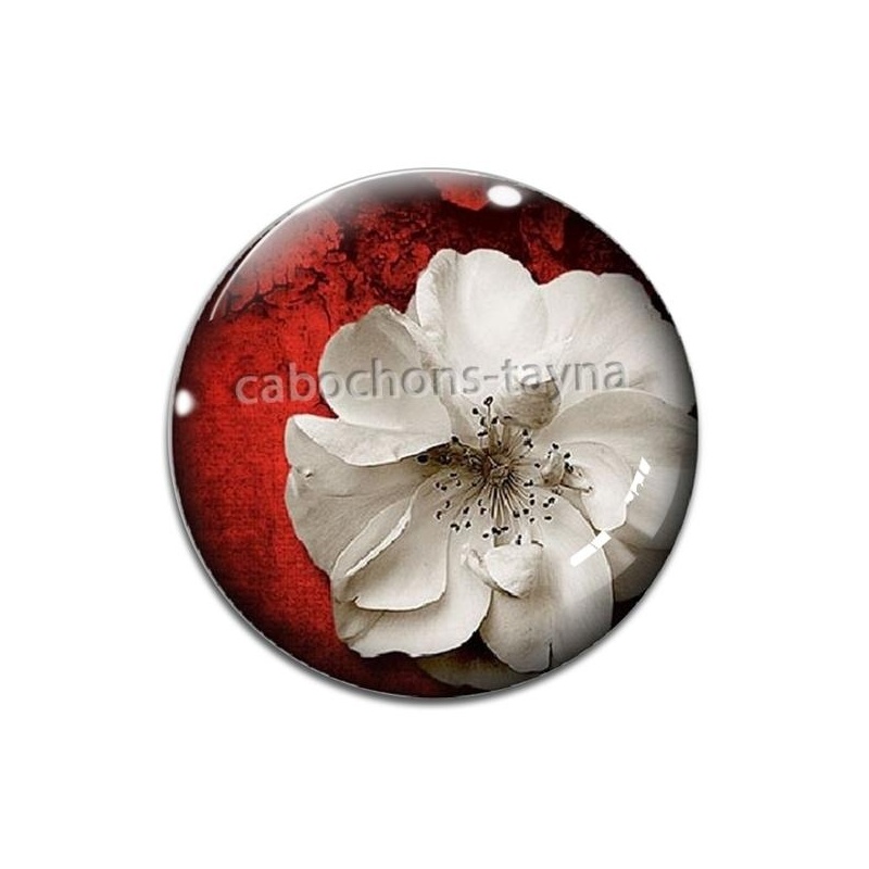 Cabochon Verre - Fleur rouge et blanche Agrandir l'image