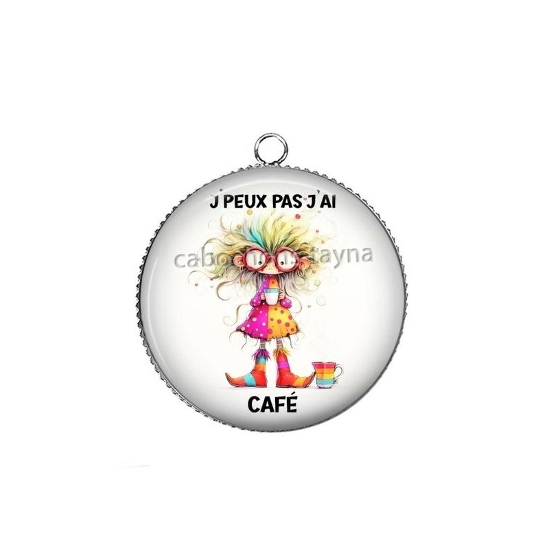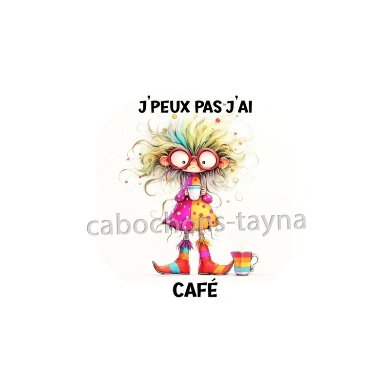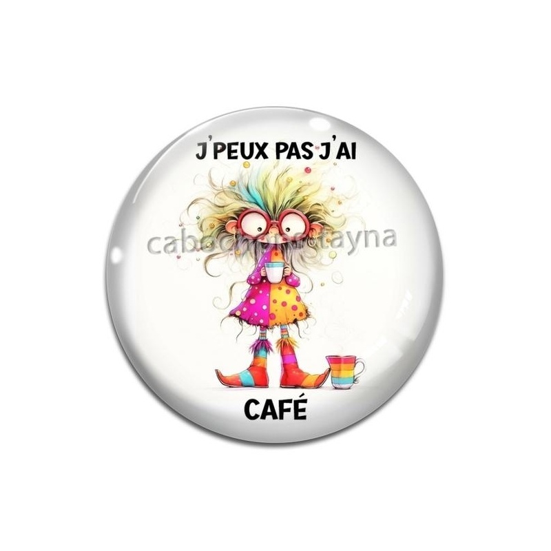 Cabochon Verre - j'peux pas j'ai café Agrandir l'image