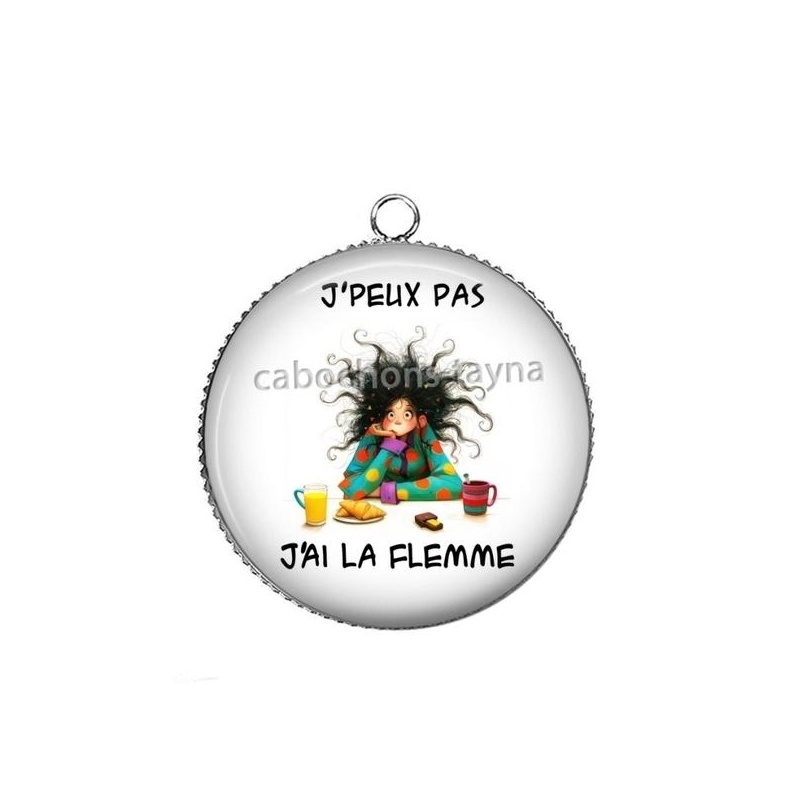 Cabochon Verre - j'peux pas j'ai la flemme Agrandir l'image
