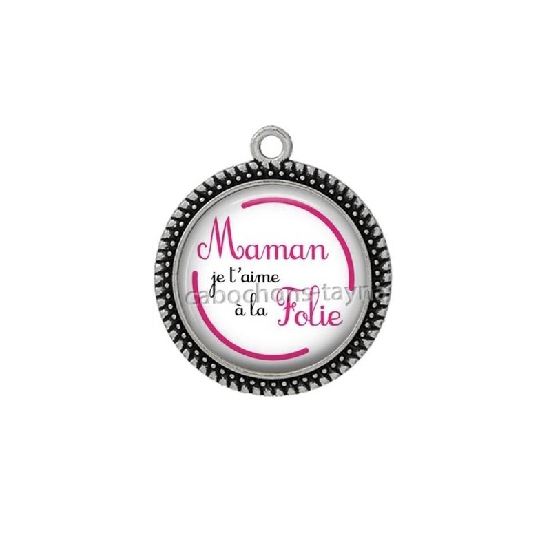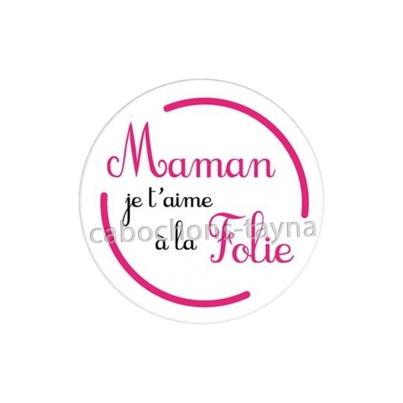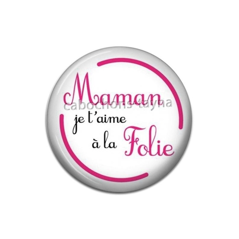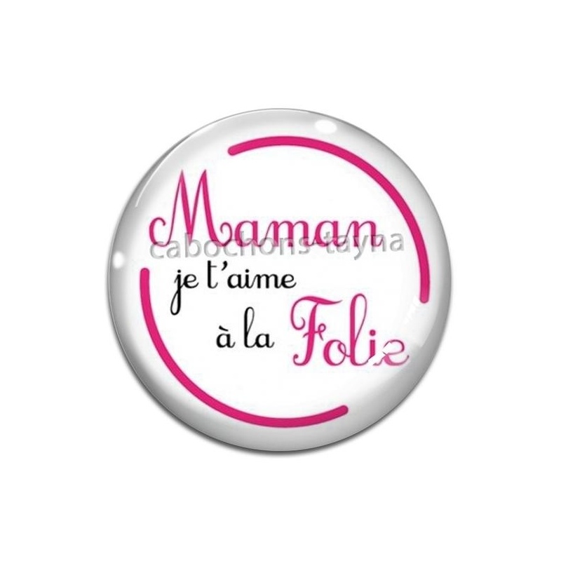 Cabochon Verre - maman je t'aime à la folie Agrandir l'image