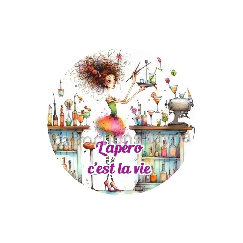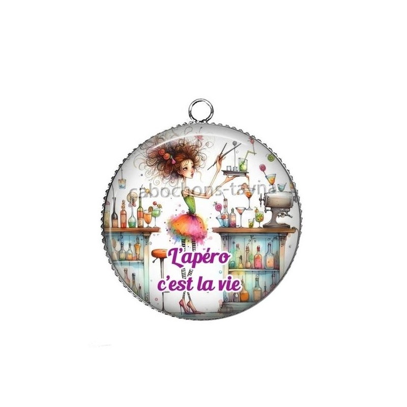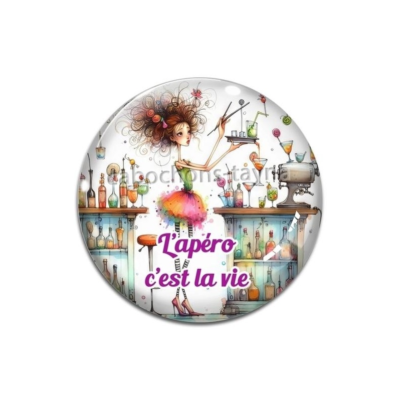 Cabochon Verre - l'apéro c'est la vie Agrandir l'image