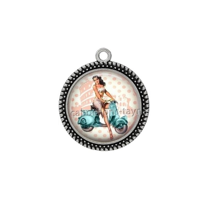 Cabochon Verre - vespa et pin up Agrandir l'image